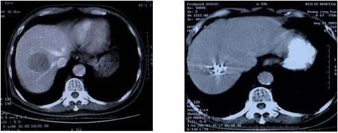 原发性肝癌治疗前 放射粒子植入后肿瘤显著 缩小、灭活